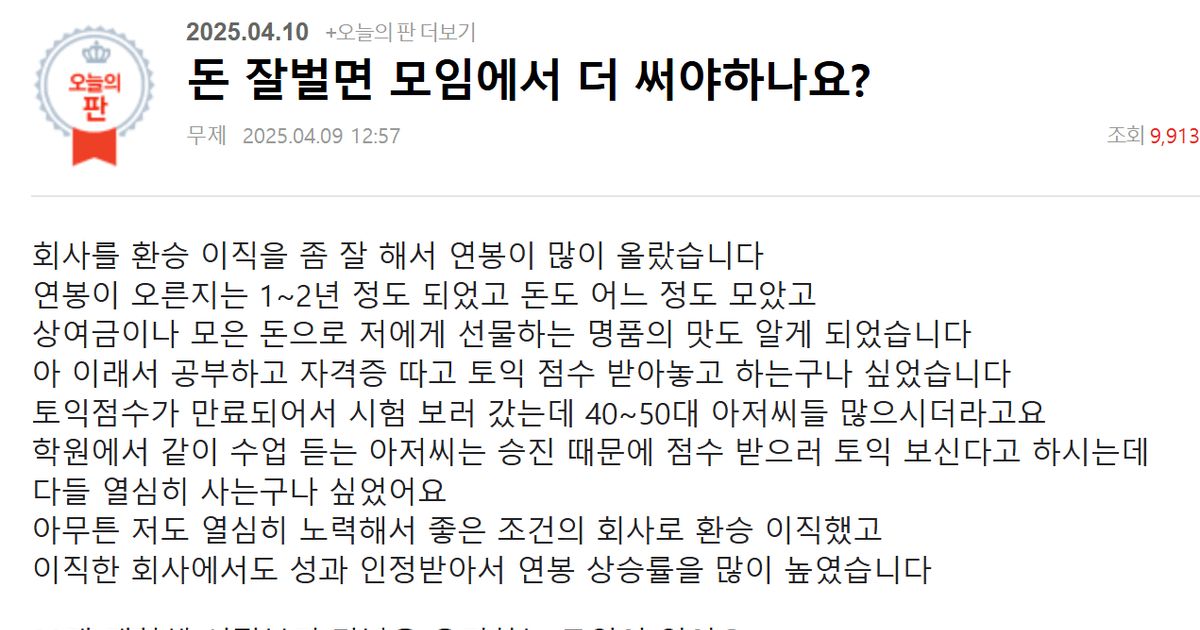 돈 잘벌면 모임에서 더 써야하나요? ,,