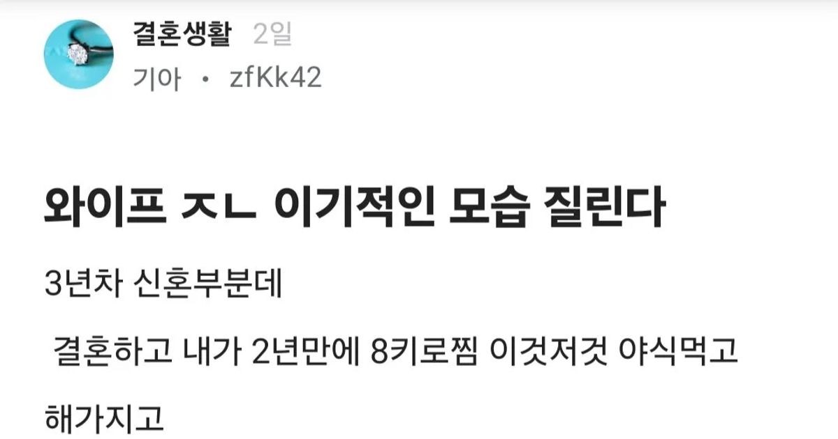 와이프 이기적인 모습에 질린다